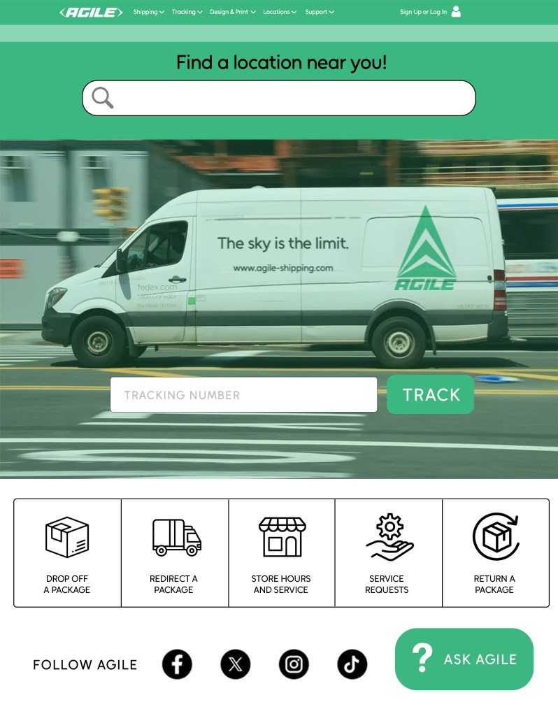 Agile is a concept project for a shipping company with a fresh and sleek design. Included in this project: Company Branding, Digital Advertisements, Web Design, and Mobile App Design.
