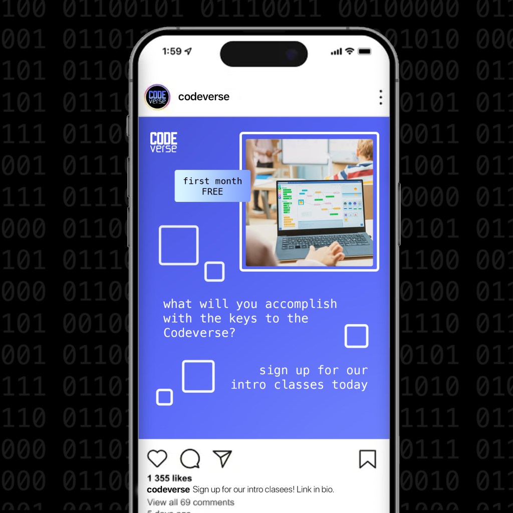 Codeverse is a concept project for a school specializing in coding classes. Included in this project: Company Branding, Stationary Design, Social Media, and Digital Advertisements