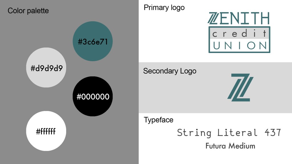 Zenith Credit Union is a concept project for a credit union with a clean, modern aesthetic. Included in this project: Company Branding, Merchandise Design, Mobile App Design, and Physical Advertisements